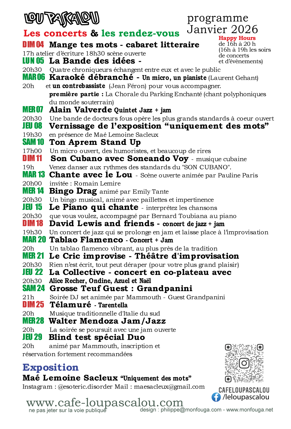 - Mange tes mots – cabaret littéraire le 4 janvier 2026 17:00